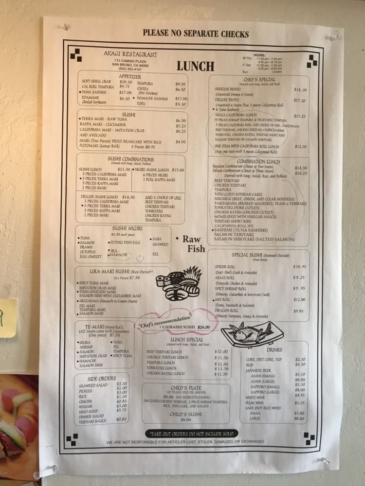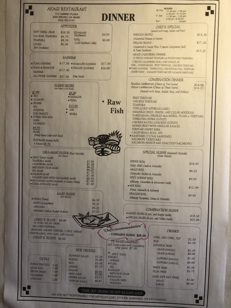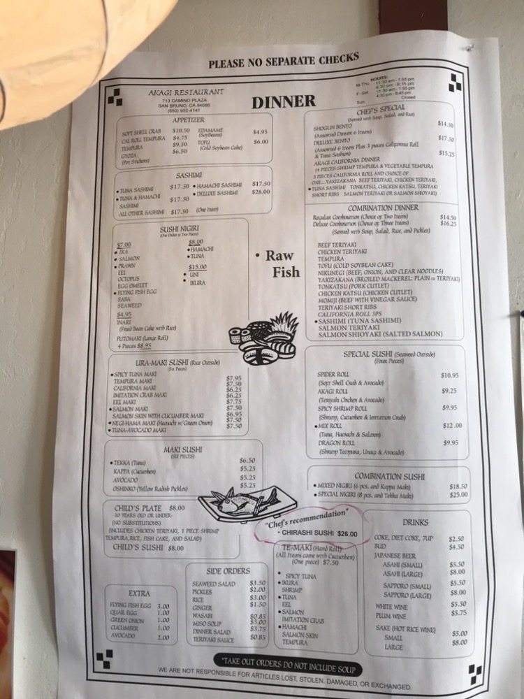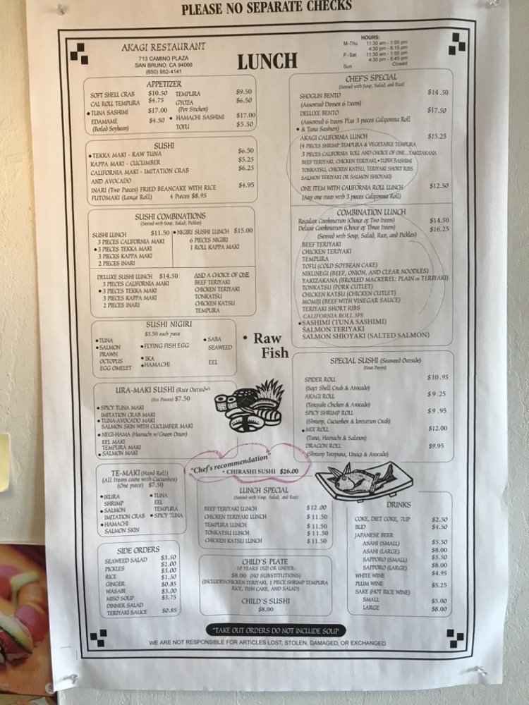 If you're craving authentic Japanese cuisine in San Bruno, look no further than Akagi Restaurant. This hidden gem offers a variety of options for sushi lovers, with fresh and high-quality ingredients that rival even the more expensive sushi spots. The menu is extensive, featuring traditional dishes like bento boxes, tempura, and teriyaki, as well as unique offerings like curry katsu and chirashi bowls. Customers rave about the generous portions and reasonable prices, making it a great value for the quality of food you receive. The casual atmosphere and friendly staff add to the overall dining experience, making Akagi a go-to spot for both locals and visitors. Don't miss out on this must-try Japanese dining destination in the area.